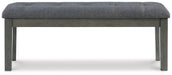 View full detailsCool and on-trend. This dining bench sports a two-tone gray look for a contemporary-yet-casual feel. The cushioned foam seat in a gray textural fab...