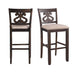 The Stone 30" Swirl Back Bar Stool Set is the perfect addition to your Stone Dining Collection! This set comes with two bar stools. The backs feature a swirl back design adds extra flair to this already stylish set. The foam cushion seat will keep you comfy for hours. Distressed markings are present throughout that complements the smokey walnut finish. Expand your Stone Dining Collection with these bar stools! - Includes Two Bar Stools - Swirl Back Design - Taupe, Upholstered Seat - Bar Height - Foam Cushion Seat - Smokey Walnut Finish - Distressed Markings Throughout - Transitional Design Acacia Solid Wood Rubberwood Foam Plywood 23 D x 20 W x 45 H, 34lbs. 1 Year Limited Manufacturer Warranty