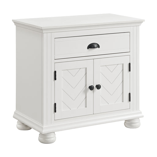 Introducing the Kona Nightstand, the perfect blend of style and functionality for your bedroom. The chevron pattern detail on the cabinet door fron...