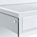 The Jacey 2pc Vanity Set is the ultimate and luxurious styling space for your everyday makeup routines. This beautiful vanity is made of manufactured wood and tempered glass. This unique vanity brings a clean and modern style to your bedroom. Featuring a mirror, glass top and three spacious drawers for holding all your tools or makeup. Don't hesitate, this vanity serves multiple purpose whether for doing makeup or storing your favorite jewelry. Features: • 3 Spacious Drawers for Ample Storage • Framed Mirror with Convenient Lighting • Integrated Power Outlet for Electronics Usage • Decorative, Acrylic Drawer Knobs for Glam Style • Built with Durable Frosted Tempered Glass Dimensions: Depth: 19.0" x Width: 47.0" x Height: 61.0" Weight: 137.0 lbs.