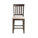 The Stone Slat Back Counter Height Side Chair Set is ready to be the newest addition to your dining room! This set includes two counter height chairs in a smokey walnut finish. Pairing with the smokey walnut finish is the taupe, upholstered seats. The foam cushion seat will keep you comfortable through even the longest of dinners. Matching back to the Stone Counter Height Dining Table is the distressed markings, giving this chair set extra flair. - Includes Two Counter Height Chairs - Slat Back Design - Upholstered Seat - Foam Cushion Filling - Distressed Markings Throughout - Smokey Walnut Finish - Transitional Style Acacia Solid Wood Plywood 22 D x 19 W x 42 H, 39lbs. 1 Year Limited Manufacturer Warranty