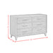 Decorate your nursery with the mid-century modern style of the Malia 6-Drawer Dresser. Built with solid poplar wood with a quality walnut veneer, this dresser doubles in function as a changing table. Six spacious drawers provide ample space for storing your baby's essentials, while English dovetailing and smooth ball bearing drawer glides mark skillful craftsmanship. Sleek, brass colored metal handles and distinctly tapered feet add charming detail, while an included anti-tip kit enhances safety. For a durable, versatile, and stylish addition to your child's nursery, the Malia 6-Drawer Dresser delivers. Features: • Made of Solid Poplar Wood with Walnut Veneer • Drawers with Skillful Dovetailing & Ball Bearing Glides • Anti-Tip Kit & Drawer Stoppers Enhance Safety • Hygienic Dustproofing Underside • Sturdy Brass Colored Hardware • 52"W x 19"D x 33"H • Due to Lighting, Product Color May Slightly Vary from Images Dimensions: Depth: 19.0" x Width: 52.0" x Height: 33.0" Weight: 161.0 lbs.