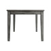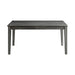 The South Paw Dining Table will be the perfect addition to your dining room! This table comes with an 18" leaf extension on the end, making it easy to add extra space for any last minute guests. This transitional table comes in a beautiful gray finish, that will make it super easy to pair with any existing decor or furnishings. Another great feature with this table is the wood grain details throughout, more prominently on the table top surface. This rectangular table has four poster legs, giving this table a classic design in a transitional style. Add the matching South Paw Side Chairs to complete your dining room today! - 18" Side Extension Leaf - Dark Gray Finish - Wood Grain Detail - Four Poster Legs - Slight Overhand on Table - Rectangle Table - Transitional Design MDF Pine Oak Veneer Legs Made w/ Cashew Wood Metal Glides for Leaf Extension 36 D x 60 W x 30 H, 106lbs. 1 Year Limited Manufacturer Warranty