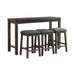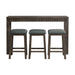 The Shelter Bay Multipurpose Bar Table Set is the ultimate set for your home! This set can be placed anywhere in your home, from a kitchen nook to a spot behind the sofa in the living room. Keeping your devices charged while you work wont be a problem, thanks to the USB ports and power strip located on the side of the table. The barstools comes with an upholstered, foam cushion seat; making it easy to watch your favorite TV shows while you work without having to completely rearrange the couch to get you setup to finish up extra work. The dark walnut finish, will pair perfectly with any existing decor you have. Say goodbye to having to haul your work to your local coffee shop and hello to the Shelter Bay Multipurpose Bar Table Set! - Multipurpose Bar Table Set - Includes: Table and Three Bar Stools - USB Ports - Power Strip - Ships in One Box - Upholstered Seats - Gray Fabric - Straight Legs - Stretchers along Barstools - Piping along Seat Cushions - Dark Walnut Finish Acacia Solid Wood MDF Top Oak Veneer Rubberwood Plywood D x W x H, 81lbs. 1 Year Limited Manufacturer Warranty