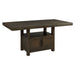 The Colorado Counter height dining collection, brings boldness to a casual dining scheme. With a trestle base design and a deep finish, this everyday counter height table serves as a perfect gathering space. Enjoy an attractive chevron design on its table top while accommodating deep chairs and extra storage. The inventive table design creates options for positioning to suite your needs. The slat back design of the chair and the black hardware finishes, reflect a design-forward blend of modern and farmhouse concept. Dimensions: Depth: 42.0" x Width: 80.0" x Height: 36.0" Weight: 191.0 lbs.